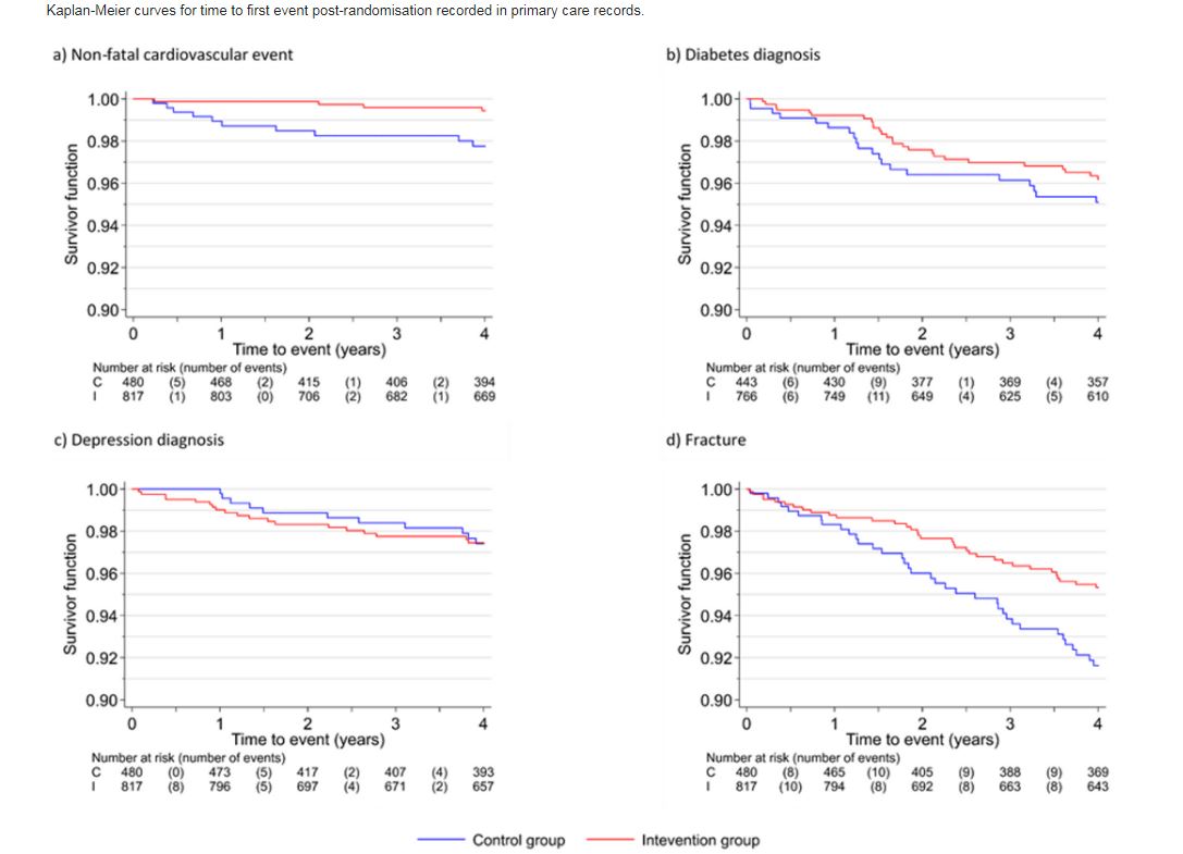 Tess Harris, et al. “Effect of pedometer-based walking interventions on long-term health outcomes: Prospective 4-year follow-up of two randomised controlled trials using routine primary care data”. https://journals.plos.org/plosmedicine/article/file?id=10.1371/journal.pmed.1002836&type=printable